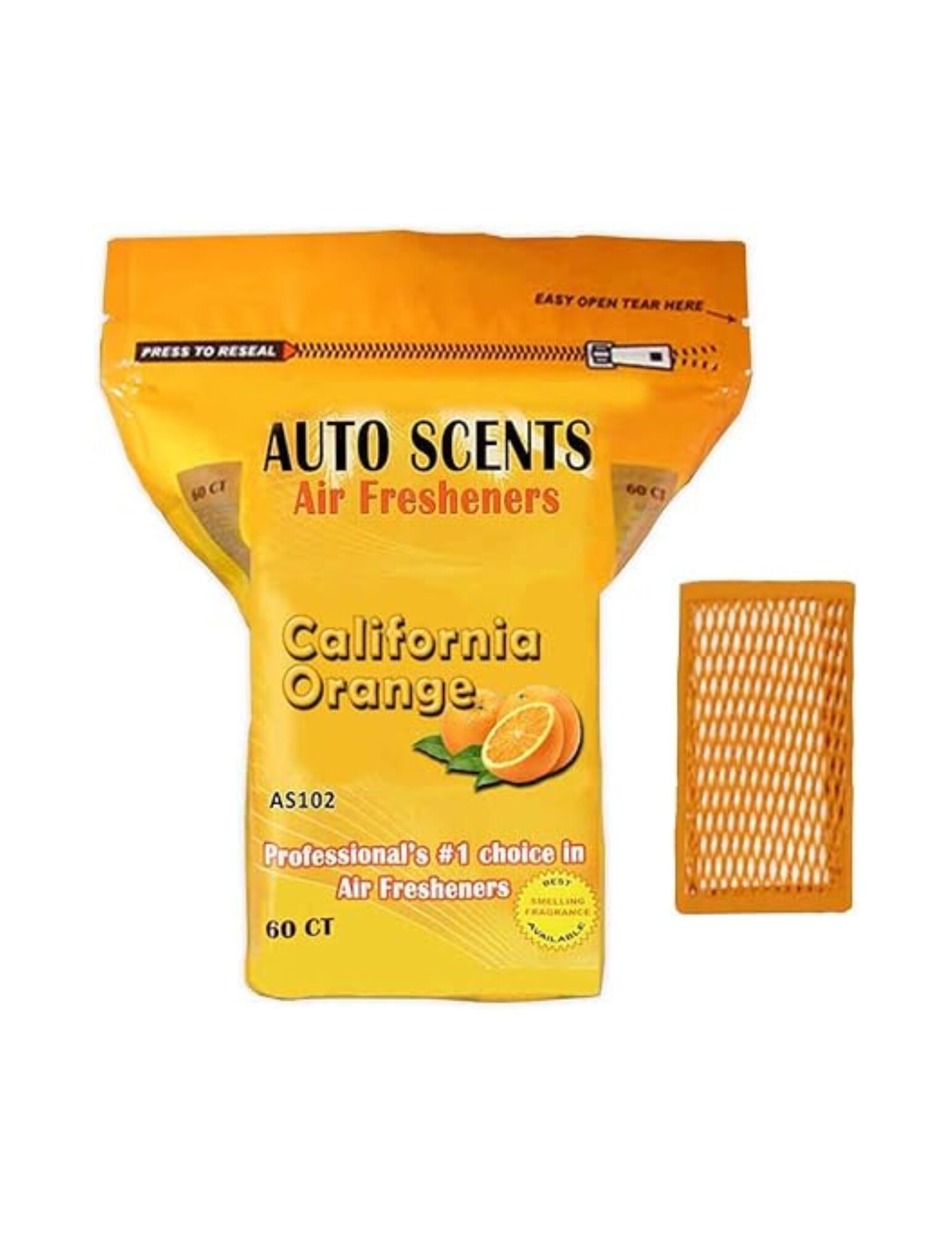 Auto Scents pads are intensely scented for long-lasting freshness and effectively eliminate stale or musty odors. They help improve air quality in vehicles, RVs, offices, and homes. Ideal for use in full-service car washes, detail shops, new and used car dealerships, RV dealerships, and rental car agencies. Each package contains 60 pads.