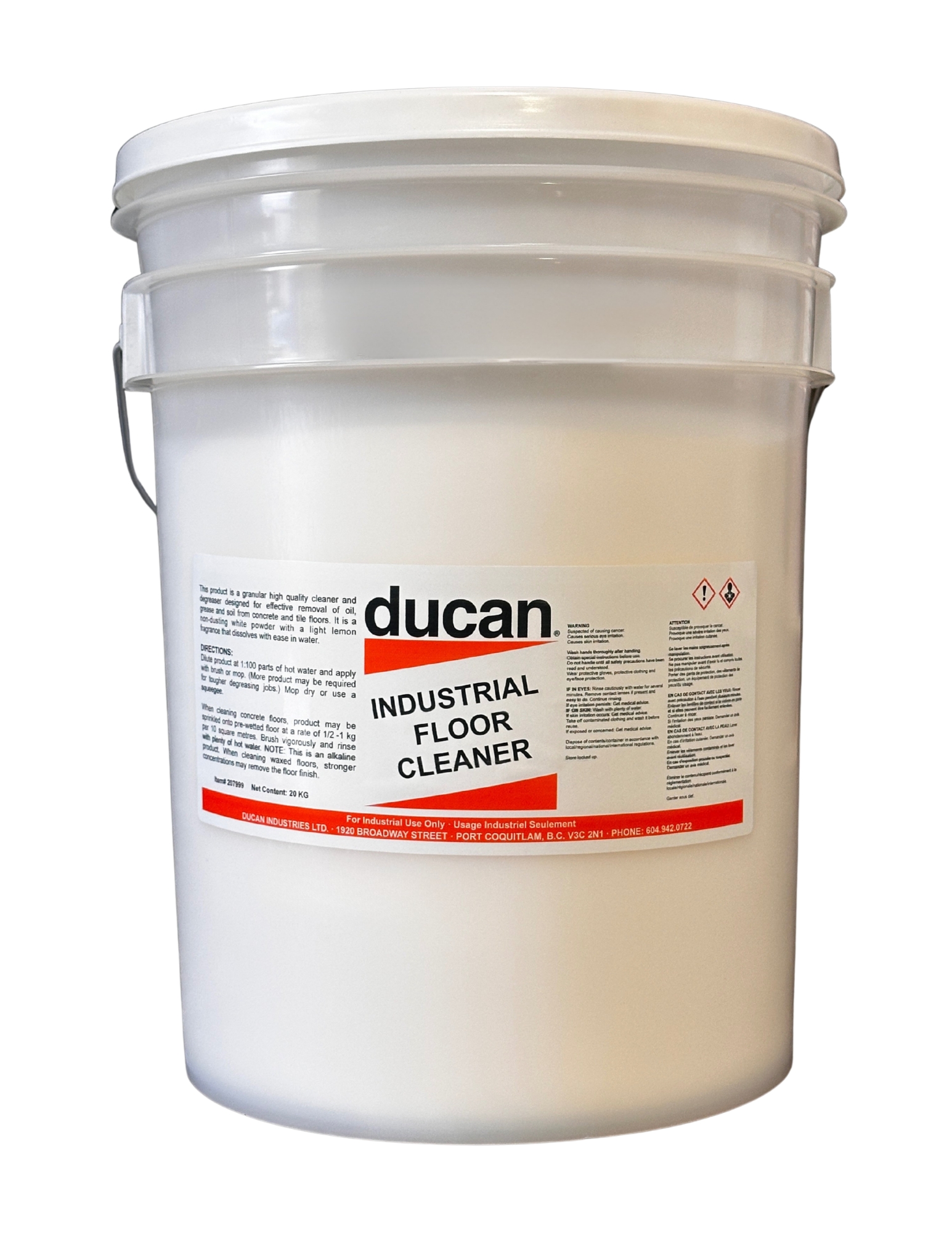 A granular high quality cleaner and degreaser designed for effective removal of oil, grease, and soil from concrete and tile floors. It is a non-dusting white powder with a light lemon fragrance that dissolves with ease in water.