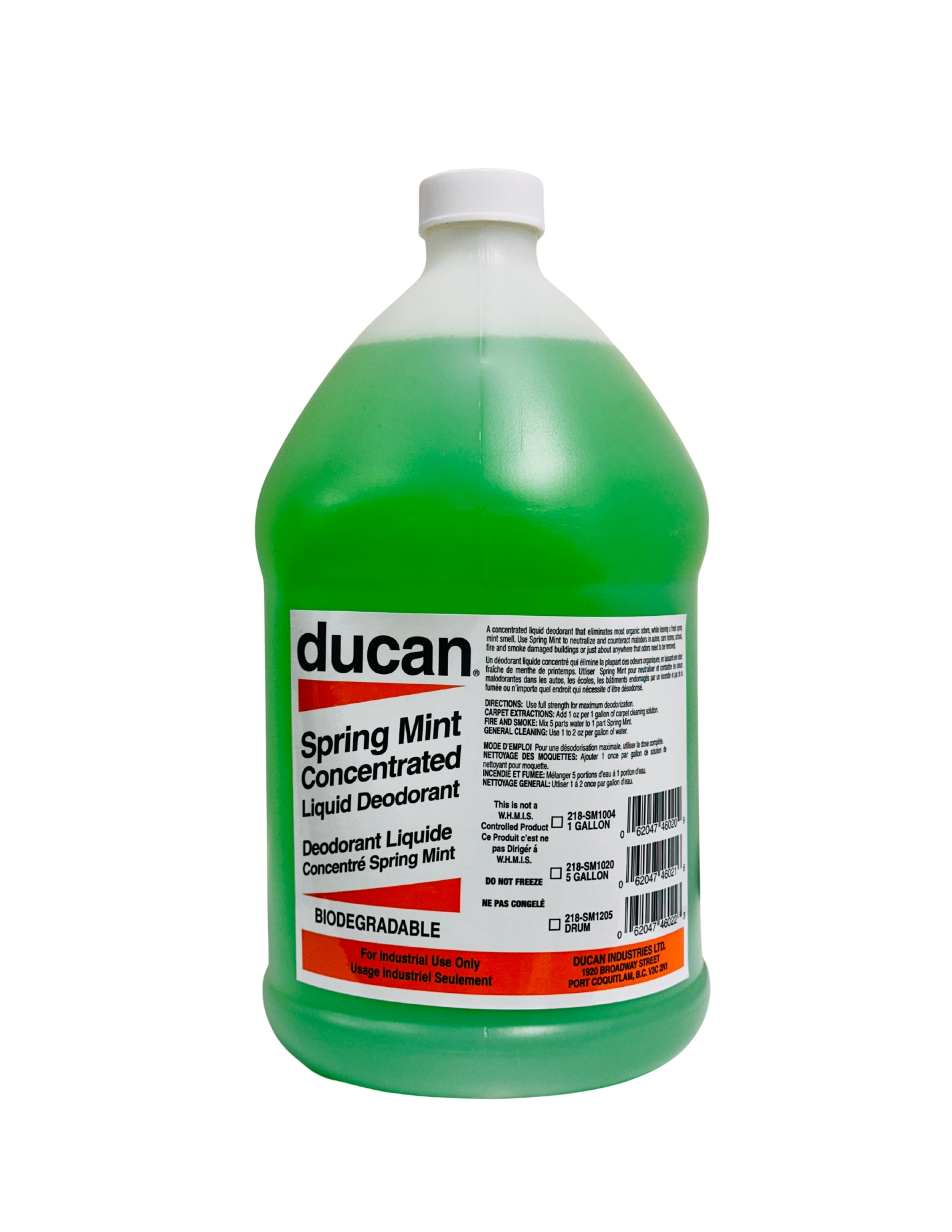 A concentrated liquid deodorant that eliminates most organic odors, while leaving a fresh spring mint smell. Use Spring Mint to neutralize and counteract malodors in autos, care homes, schools, fire and smoke damaged buildings, or just about anywhere that odors need to be removed